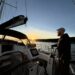 När vi kommer längre ut, passerar Nötbolandet och i höjd med dess udde behöver vi ändra kurs, runda den och gå mellan fastlandet och Malmön för att ta oss söderut. Vinden kommer nu mer från sidan och vi får mer öppet vatten runtomkring oss, även om vi fortfarande går inom skärs. Prognosen förutsåg byig vind, upp till 9-10m/s och det märktes först inte mycket, men när vi börjar närma oss Balesudden tar det i, kommer stötvis med hårda byar och blir lite stökigt. Helga lever upp på ett sätt, blir lite bångstyrig och kräver uppmärksamhet då vi går väldigt nära vinden. Från att flyta fram majestätiskt med lutningen bekvämt mot babords vattenlinje, till att kasta sig, bli nerblåst och vara generellt trotsig i vår hand. Sverker får styra ganska mycket och ibland kastar hon sig lite som en okontrollerad vildhäst. Jag är aldrig rädd, alltid trygg i Helga och trygg med Sverker, till och med när det ilar i magen av lutningen. De är ett team, Helga och Sverker, och det märks extra tydligt när det blir mer allvar och krävande. Jag blir ofta tystare då, lyssnar och följer de order som ges. Det är det absolut viktigaste för dem som följer med på båten – oavsett novis eller van, lyssna alltid på kaptenen och håll dig ur vägen om så krävs.