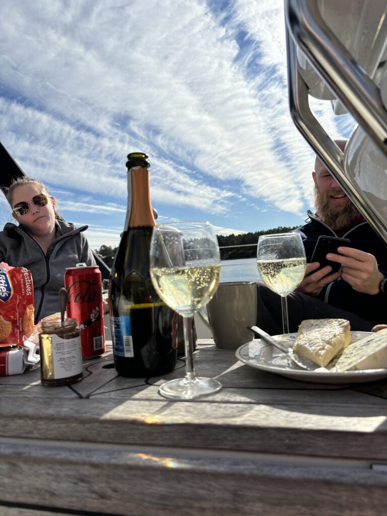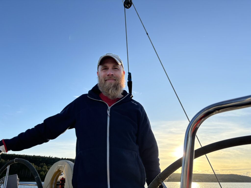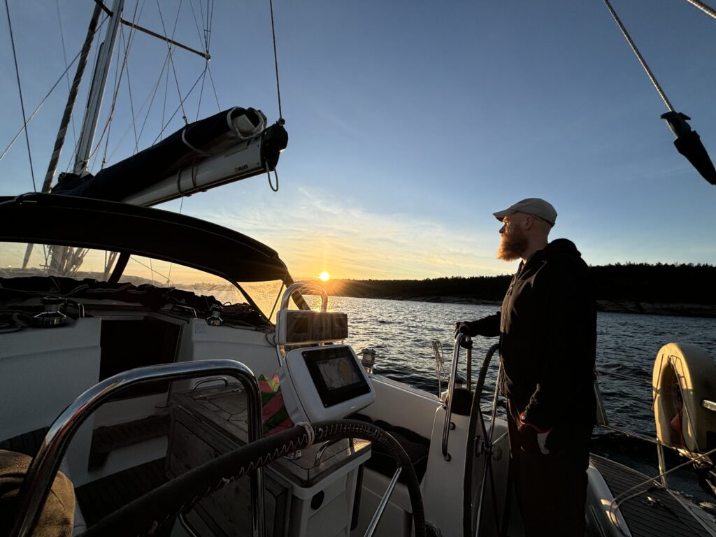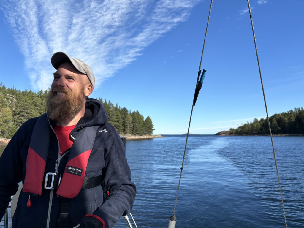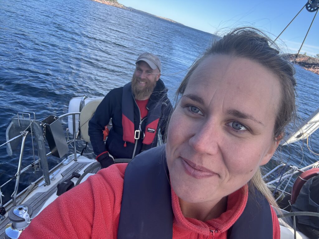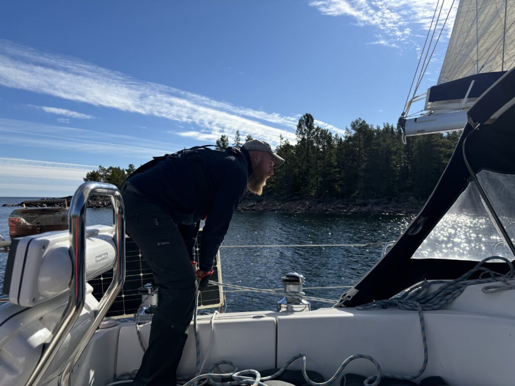 Med fint besök från Stockholm planerade vi för säsongens sista riktig helgtur med Helga. Vädret såhär inpå hösten är lite ostadigt, men prognosen såg bra ut och när fredagen väl infann sig var det en strålande dag. Det var lite luriga vindar som blåste sydöstligt 2-4 m/s, vilket blev motvind. Men vi testade att sätta segel ändå. Vi började kryssa oss fram för att ta oss ut ur Ö-viksfjärden, men ganska snart mojnade vinden mellan öarna och fastlandet.