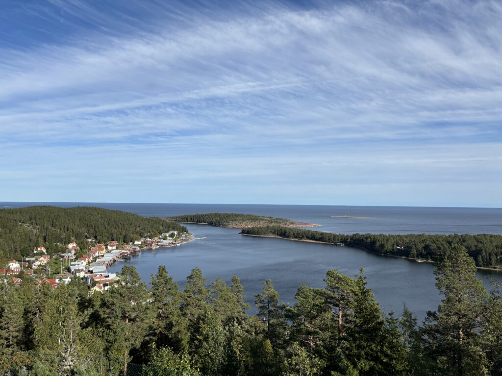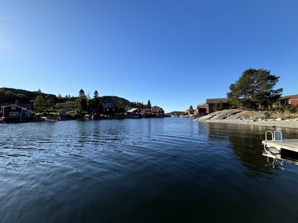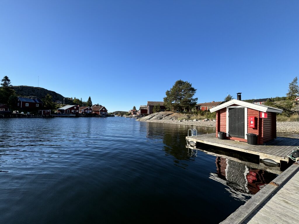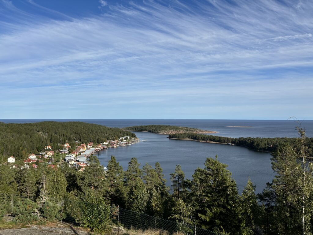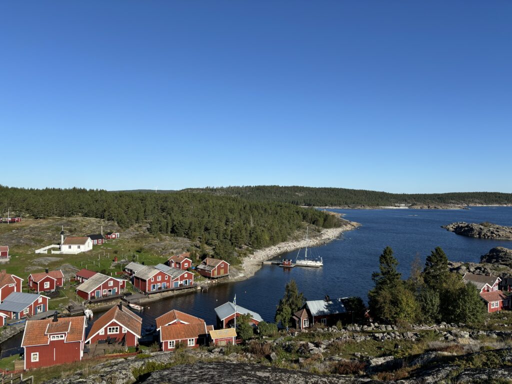 Vi tar en liten rundvandring på ön, besöker det gamla kapellet och tar en liten hajk upp på en utsiktsplats ovanför det lilla fiskeläget. På vägen ner möter vi några av öns stugägare som plockar bär och småpratar lite dem. Allt är så lugnt och stilla!