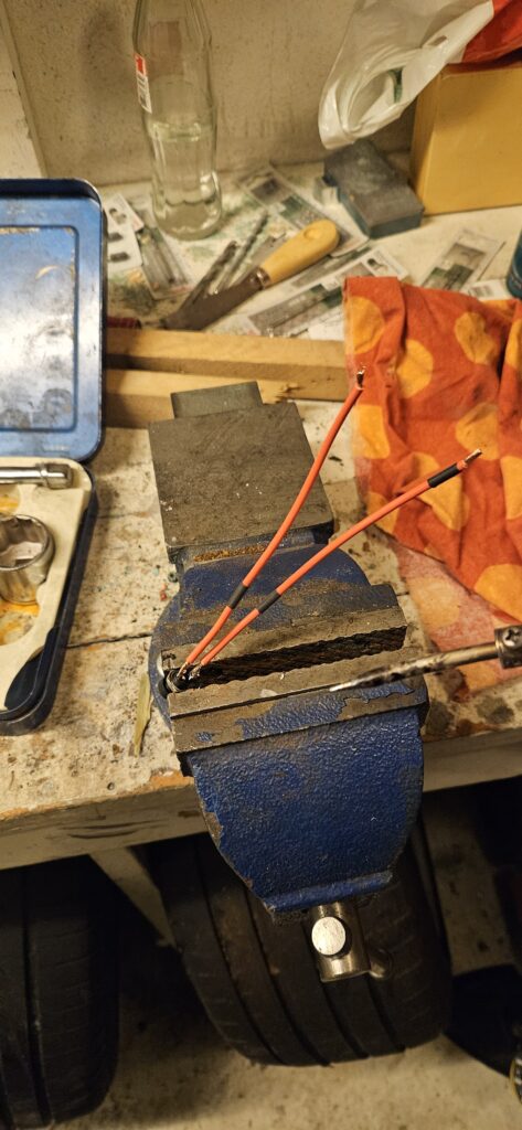 Anslutningen behövde få kablar lödda. Inte det jobb jag gör allt som oftast, och de kablar jag hade liggande var kanske väl grova, men det verkar sitta fast och ihop, det kommer funka.