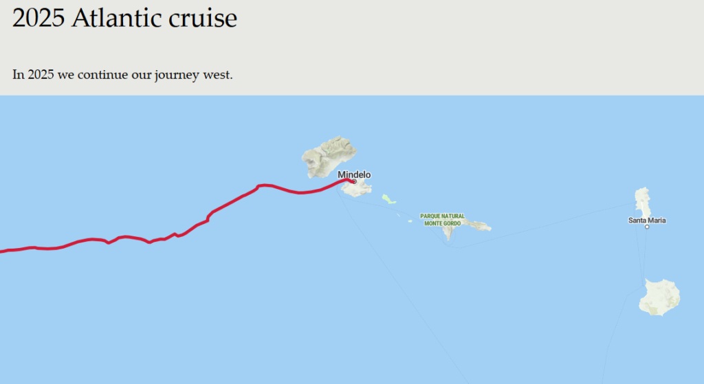 Med lite uppladdningsmagi går det att få riktiga spår publicerade på den utökade loggen (här på sidan alltså), rimligen exporterade automagiskt via ett Cron-job ett visst klockslag varje natt, vid uppstart, samt vid någon trigger som borde gå att koda in via SignalK (kanske?). Länk till skaparens blogg och logg, https://lille-oe.de/ (riktigt snygg!) samt den data han exporterar https://github.com/meri-imperiumi/log/tree/main/_data/logbook.